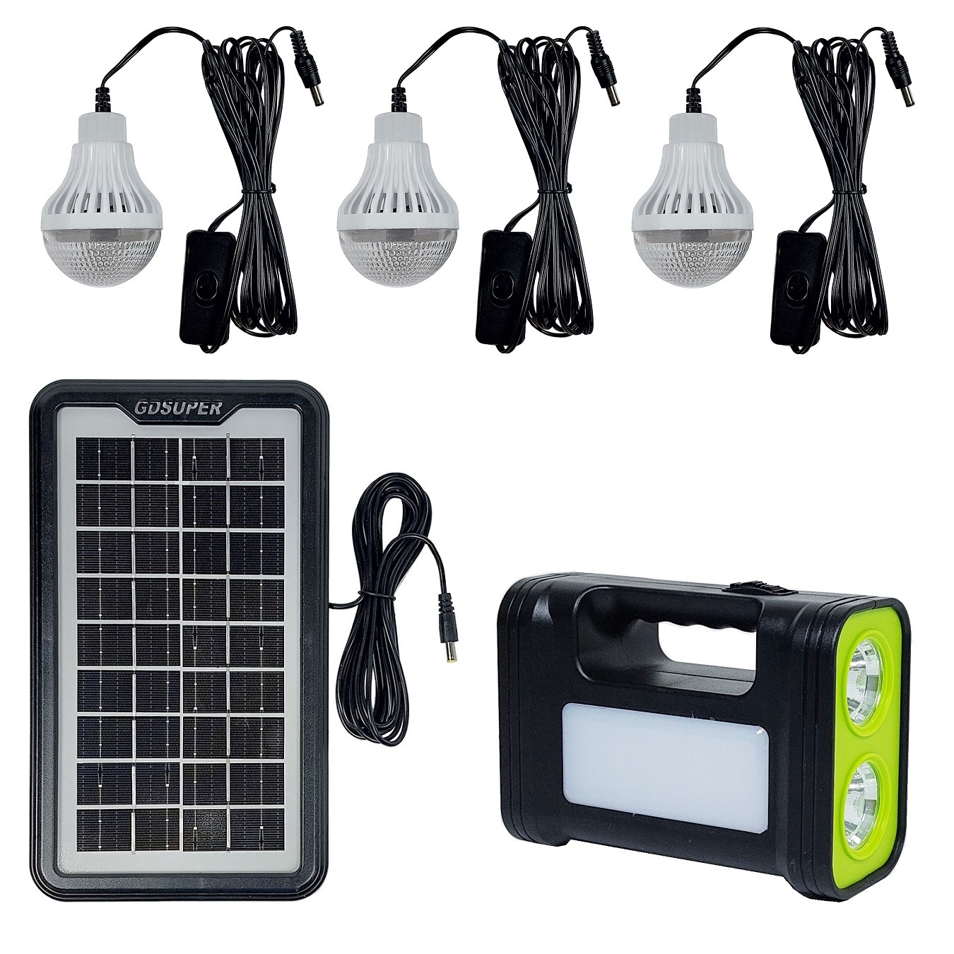 بهره برداری از انرژی های نو و پاک روز به روز در حال افزایش است که خود موجب بهتر شدن شرایط زیست در کره زمین می شود . یکی از این گونه های انرژی پاک ، انرژی خورشیدی است که به دو روش تولید می شود که یکی در نیروگاههای حرارتی خورشیدی و دومین روش ، تولید برق در نیروگاه های با پنل های خورشیدی می باشد . در ابعاد کوچکتر می توان از این انرژی با پنل خورشیدی بهره گرفته و انرژی الکتریکی تولید شده را در باتری های شارژی ذخیره کرد و به هنگام نیاز ، از آن بهره گرفت . سیستم خورشیدی GDSUPEER مدل GD-17 یکی از این دستگاهها است که از یک دستگاه اصلی با 3 منبع روشنایی بر روی خود که دو عدد بصورت چراغ قوه در مقابل و یک منبع بصورت مهتابی در قسمت جانبی آن قرار دارد ، تشکیل شده است . یک پنل خورشیدی 9 ولتی با توان 3.5 وات از اجزای دیگر این سامانه است که با سیم4 متری و یک فیش در انتهای آن ، قابلیت اتصال به دستگاه اصلی را داشته و درصورت قرار گرفتن در مقابل نور مستقیم خورشید ، توان لحظه ای 3.5 وات را در دستگاه شارژ می کند . همچنین 3 عدد لامپ ال ای دی با سیم 4 متری و کلید ، در جعبه دستگاه قرار دارد که با اتصال به دستگاه اصلی می توان از روشنایی آن برخوردار شد . در پشت دستگاه یک پورت USB قرار دارد که می توان به کمک آن موبایل را شارژ کرده و بعنوان پاور بانک از آن بهره گرفت . کابل شارژ چند کاره نیز در جعبه قرار دارد تا بتوان بیشتر دستگاههایی که با ولتاژ 5 ولت شارژ می شوند را شارژ کرد . علاوه بر شارژ با نور خورشید می توان شارژ دستگاه را با برق شهر و به کمک سیم دوشاخه همراه دستگاه انجام داد .