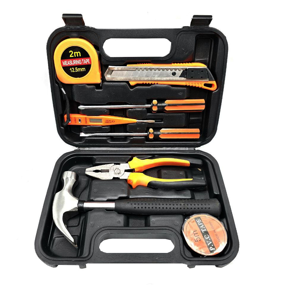 محتویات مجموعه: انبردست, کاتر, متر, فازمتر, چکش, پیچ گوشتی, چسب